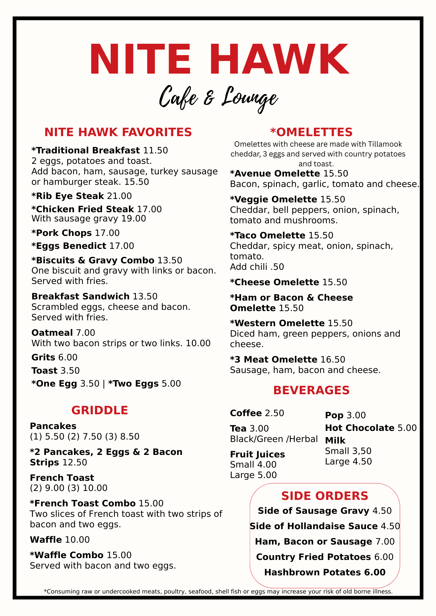 Hot breakfast. Classic diner plates. Burgers, fries, and comfort food done right.The Nite Hawk — Portland’s original neighborhood spot since 1931. Slide 1 Slide 1 (current slide) Slide 2 Slide 2 (current slide) Slide 3 Slide 3 (current slide)